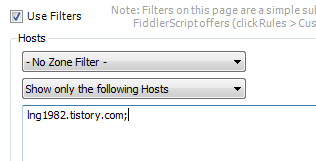 다음처럼 Use Filters 체크박스에 체크를 하고 Show only the following Hosts 를 선택한 후 원하는 호스트 명을 넣어주면 된다.