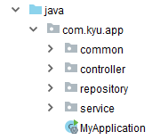 MyApplication 클래스가 위치한 곳의 하위 패키지가 있는 common, controller, service, repository 가 스캔이 된다.