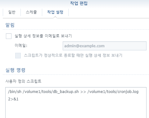 | 작업 스케줄러에 사용자 정의 스크립트 추가하기