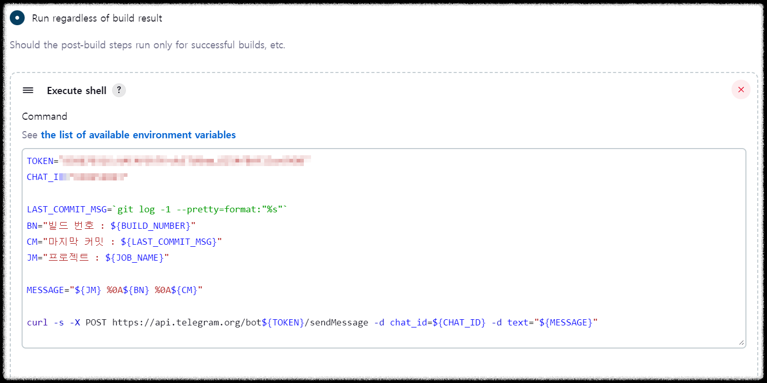 정상적으로 배포가 완료됐는지를 확인하고 싶어 telegram 으로 배포 완료 메세지를 수신 받게 설정했다.