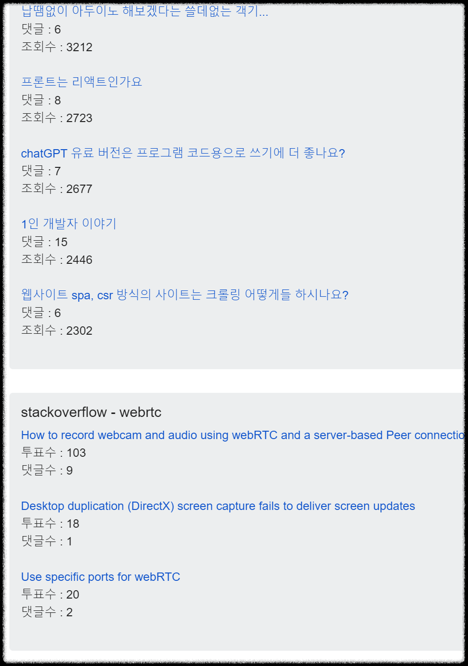 수신된 정보를 열어보면 '조회수가 높은' or '투표수가 많은' 컨텐츠 데이터를 추출하여 메일로 전송해 준다.
