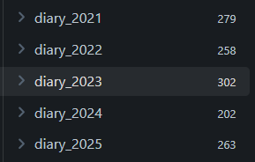 일기는 263회 작성했다. 365일 기준 약 72% 정도의 작성률이다.